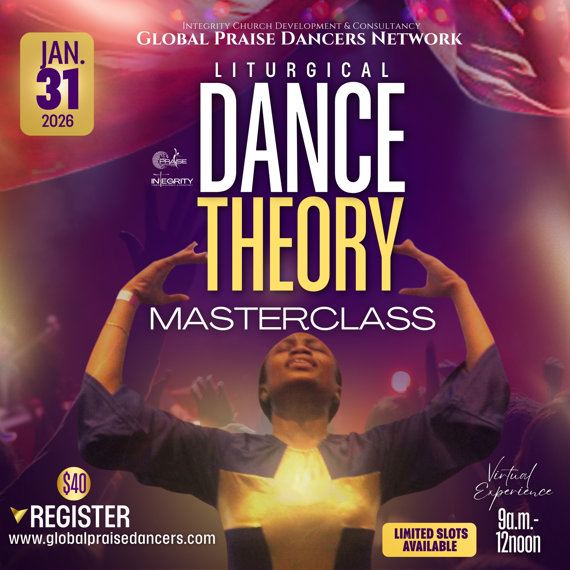 This Liturgical Dance Theory Masterclass (Virtual Experience) is designed for dancers/dance leaders who are ready to take their gift of dance and ministry to a new dimension (Ages 12+).